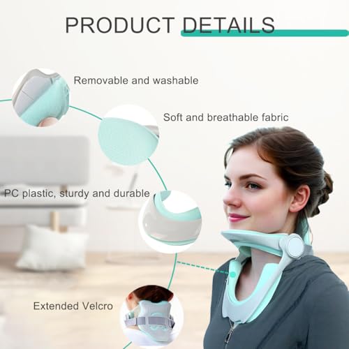 360°Adjustable Neck Brace for Neck Pain and Support, Cervical Neck Traction Device for Home Use, Neck Stretcher Neck Decompression Devices for Forward Head Posture Correction, Green