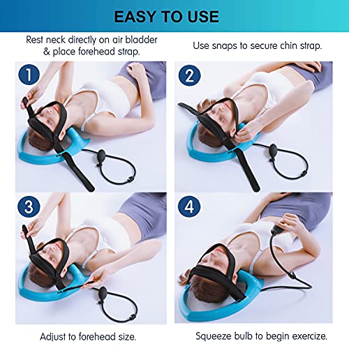 【Lightweight and easy to use】: With adjustable headpieces, you can choose the perfect size to secure your head. Manual operation, just press the pump to start practicing. Lying on this neck traction pillow, I feel comfortable and relaxed.