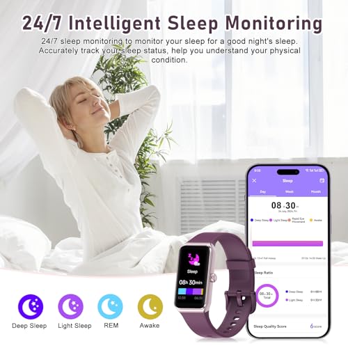 【24/7 Heart Rate/Temperature/Sleep Monitoring】This fitness tracker also monitors your heart rate and body temperature throughout the day. This fitness tracker supports real-time dynamic heart rate, blood oxygen, blood pressure, and body temperature monitoring, which makes you more aware of your physical condition. Track your deep sleep, light sleep, and wakefulness stages to better understand the quality of your sleep each night. Sleep monitoring time is at night