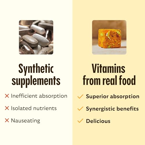 MORE THAN A MULTIVITAMIN: One delicious, real-food Bite packed with 20+ essential nutrients, whole food vitamins, minerals, and superfoods to help fill daily gaps — no pills, capsules, or synthetic nutrients. This is a great supplement to boost energy, gut health, skin, promote healthy hair growth, natural GLP-1 for weight management, brain and bone strength, and immunity!