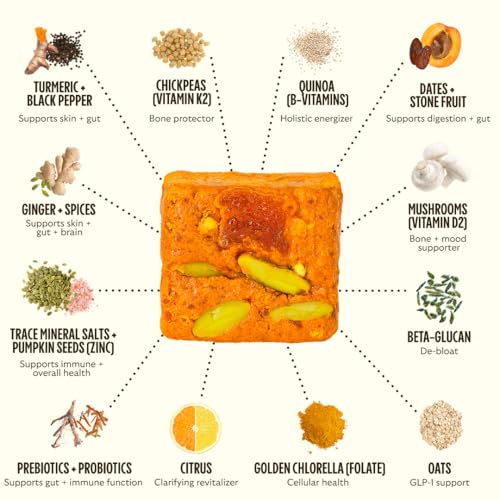 FUNCTIONAL INGREDIENTS, REAL BENEFITS: Each Bite delivers biotin, digestive enzymes such as prebiotics, probiotics, and science-backed nutrients like beta-glucan (a natural GLP-1 for appetite suppression) to support digestive health, metabolism, energy, hair, skin & nails, brain function, bone health, and immunity. Packed with B vitamins, vitamin D, vitamin K, vitamin E, zinc, folic acid, turmeric and curcumin for complete daily support.