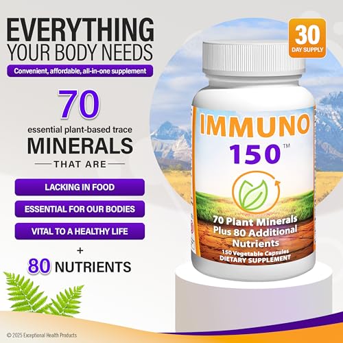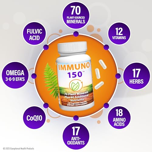 Immuno 150, Immune Support Supplement, Packed with 70 Plant Minerals, 13 Essential Vitamins and 68 Additional Nutrients-150 Vegetable Capsules- Immune Boost for All Age Groups