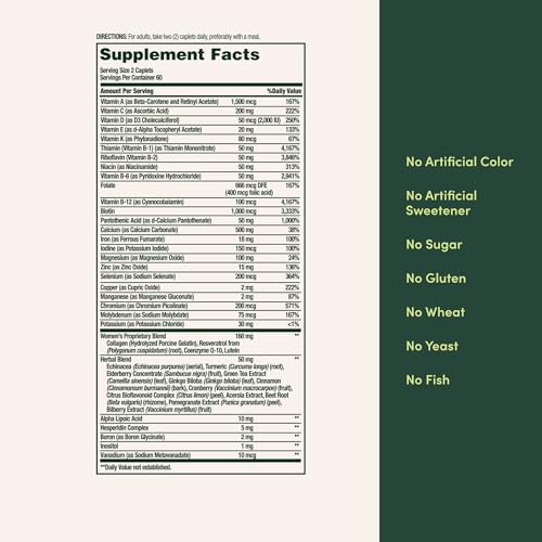 Nature’s Bounty High Potency Women’s Complete Multivitamin, Daily Vitamin with Vitamin C, Supports Heart Health & Immune Function, Essential Nutrition for Women, 120 Caplets