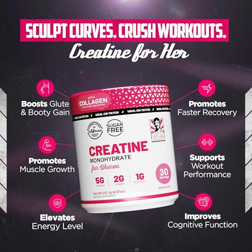 Creatine for Women Booty Gain, Muscle Builder, Energy Boost, Pink Lemonade, Cognition Aid | Collagen, BCAA, Lean Muscle, Vegan Monohydrate Micronized Powder, Alt Creapure,30 Ser