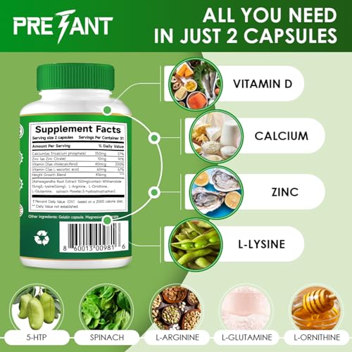 PRETANT-Growth Capsules to Grow Taller – Height Increase Maximizer with Calcium for Bone Strength -Natural Get Taller Supplement – Dietary Edible Healthcare Fitness