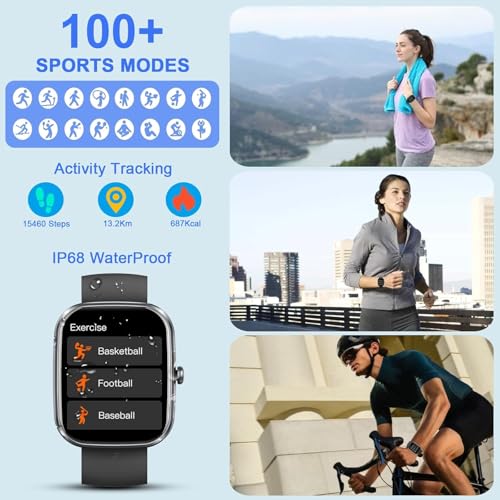 TRAUSI Smart Watches for Women Men, 1.83″ HD Smartwatch with 120 Sports Modes, Heart Rate/Sleep Monitor, IP67 Waterproof, Bluetooth Call & Music Control