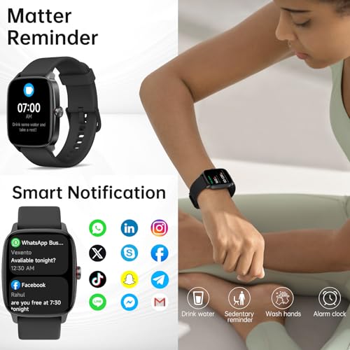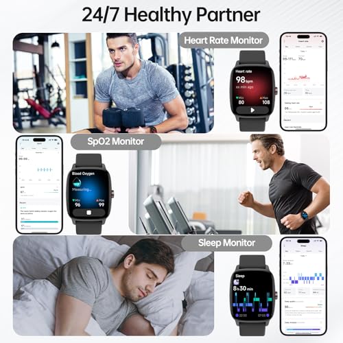 Fitness Tracker with Smart Notifications: Smartwatches for men with message notification keeps you informed effortlessly, syncs alerts from popular apps – WhatsApp, SMS, Instagram, Facebook, Snapchat, Twitter, Gmail – directly to your wrist. Whether exercising, in a meeting, or on the move, fitness watches ensure real – time reminders. 1.85″ colorful touchscreen shows each notification clearly, with gentle vibrations. (Note: Can’t reply via watch)