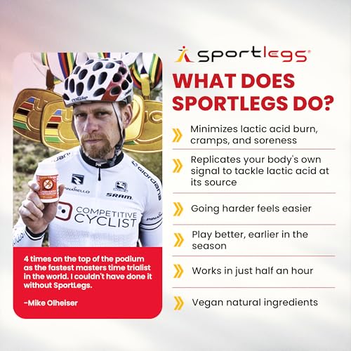 TRIAL SIZE. Find out if SportLegs works for you. Don’t let frustrating lactic acid stop you short of your VO2max best. SportLegs endurance supplement tackles lactic acid at its source, so you can perform beyond where the “burn” used to stop you.