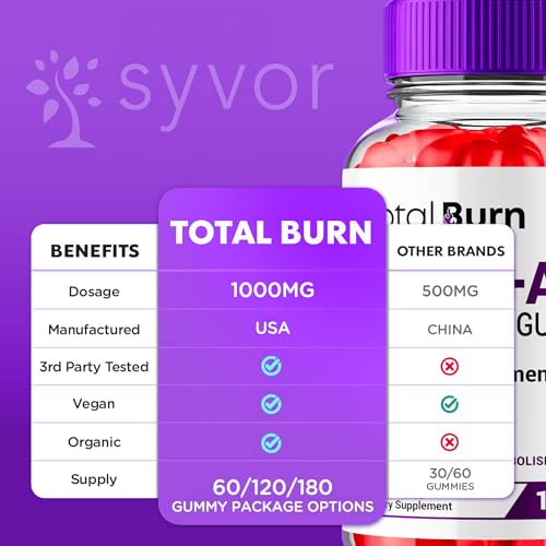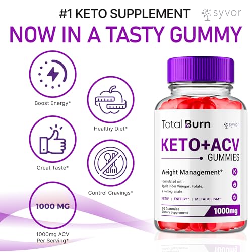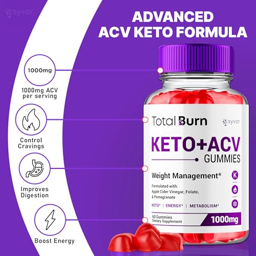 Total Burn Keto ACV Gummies, TotalBurn ACV Gummys Advanced 1000MG Vitamin Supplement – All Natural Total Burn Keto+ACV Fitness and Energy Support in a Delicious Gummy with Vitamin B12 (60 Gummies)