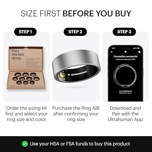 BUY THE SIZING KIT FIRST: Ultrahuman Ring sizes differ from standard ring sizes. Purchase the Ultrahuman Sizing Kit first, which includes a ring sizer, to accurately determine your size. The Ring AIR is available in 10 sizes (5-14), ensuring a comfortable, secure fit. Using the sizing kit helps you avoid returns and exchanges, ensuring you select the right size before purchasing.