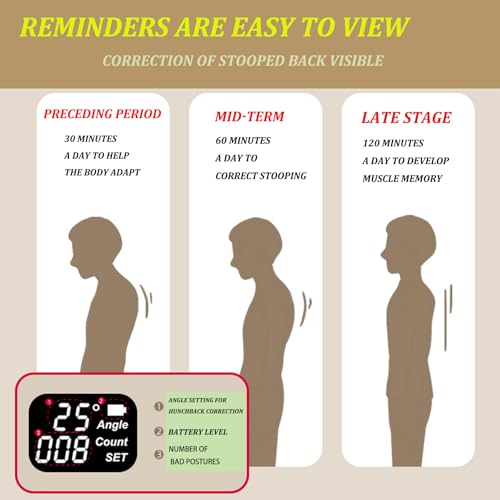 Adjustable Angle: Our smart hunchback corrector with adjustable correction angle function, 5 degrees to 50 degrees free adjustment, for example, you set it to 20 degrees, then when your hunchback arc to 20 degrees, it will immediately vibrate to remind you!
