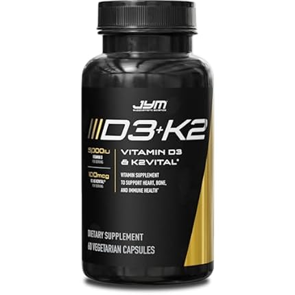 JYM D3 + K2 with 5000iu D3 & 100mcg of Vitamin K2 as MK-7, Bone, Cardiovascular + Immune Health for Men & Women, Softgel